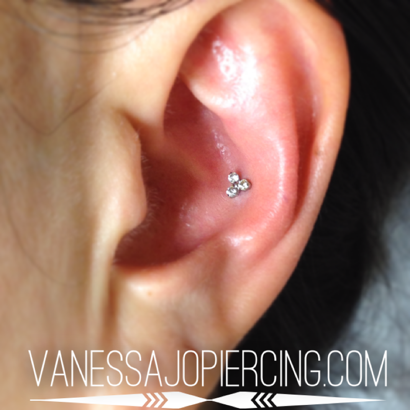 Conch piercings have always been my favorite. They just look soooo good! This conch was adorned with a classic Neometal trinity end, made with genuine Swarovski crystals of courseđź’Ž